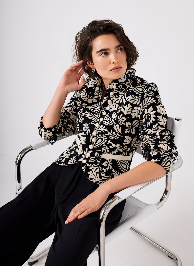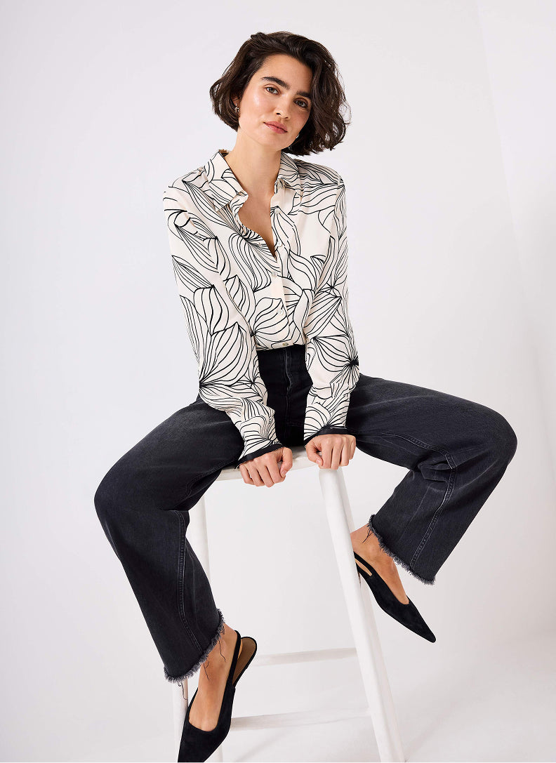 Floral prints in neutral tones add just the right amount of interest – wear head-to-toe with black accessories for statement chic or balance with a printed shirt and jeans or wide leg trousers and a sleeveless knit for endless style options