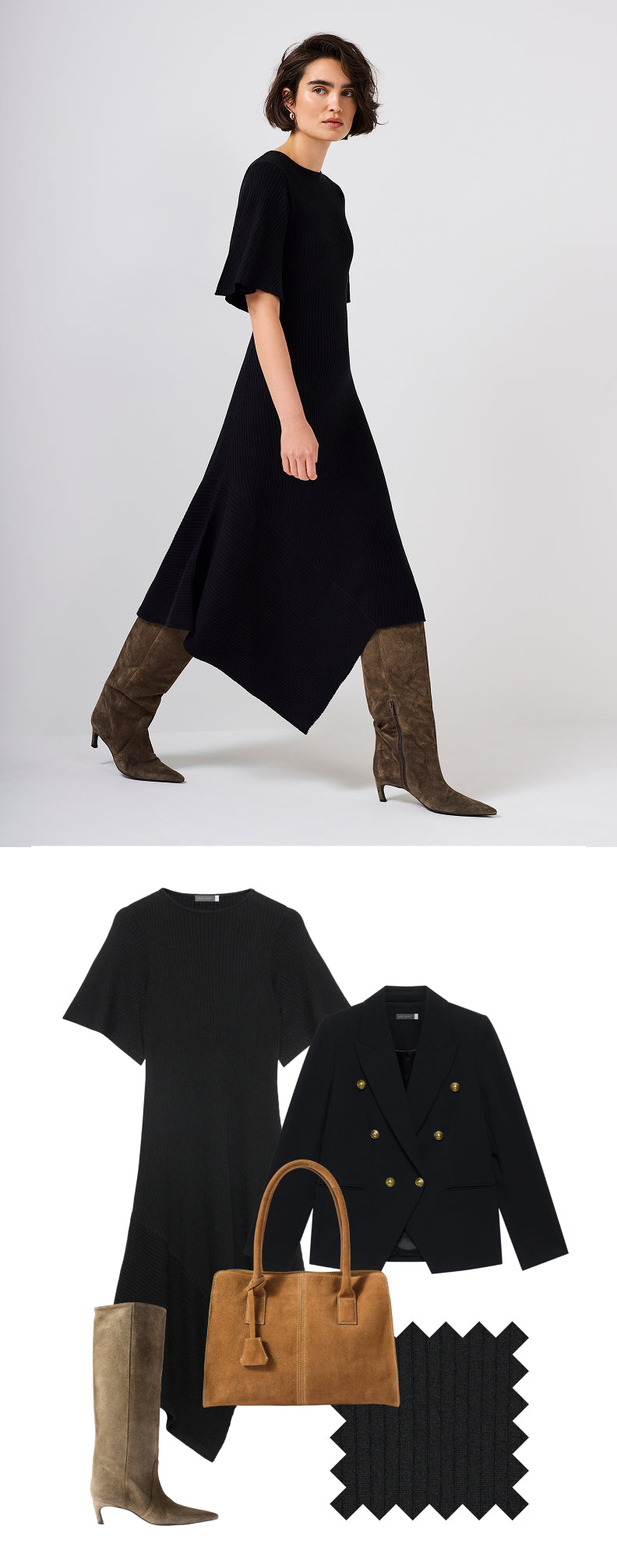MIDI DRESS + CALF BOOTS
