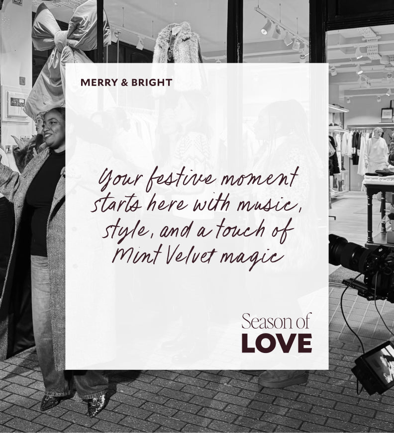 We believe it’s the little things that make life lovely, and as it’s the season of love, we wanted to pause, come together and celebrate just that. From Marlow to Bath and across the country, the Some Voices choir have been spreading joy, one harmony at a time - filling our boutiques with music, laughter and that unforgettable Mint Velvet feeling. To warm up our community, there were hot chocolates, mince pies, spontaneous singalongs and plenty of conversation - a chance to slow down and enjoy the moment. Along the way, we handed out small, thoughtful surprises - little Mint Velvet festive parcels, given as random acts of kindness, simply to make someone’s day that bit lovelier. Relaxed Glamour Season’s Greetings... from all of us here at MV.