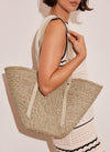 Neutral Scallop Leather Trim Straw Bag
